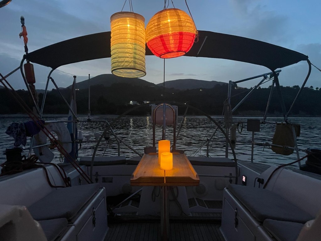 We barbecuen op het achterdek en eten in de kuip hoewel het flink afgekoeld is. Daarna lekker naar bed.