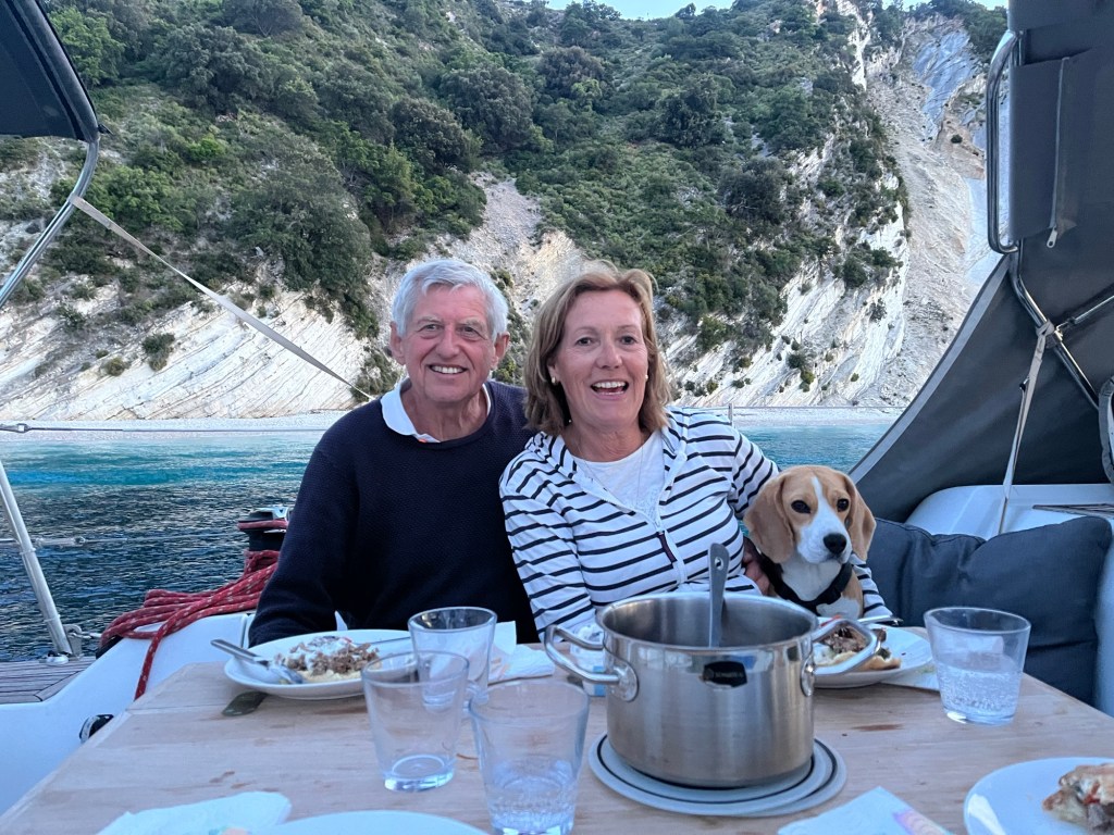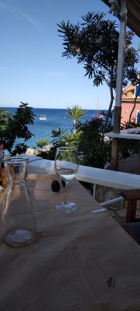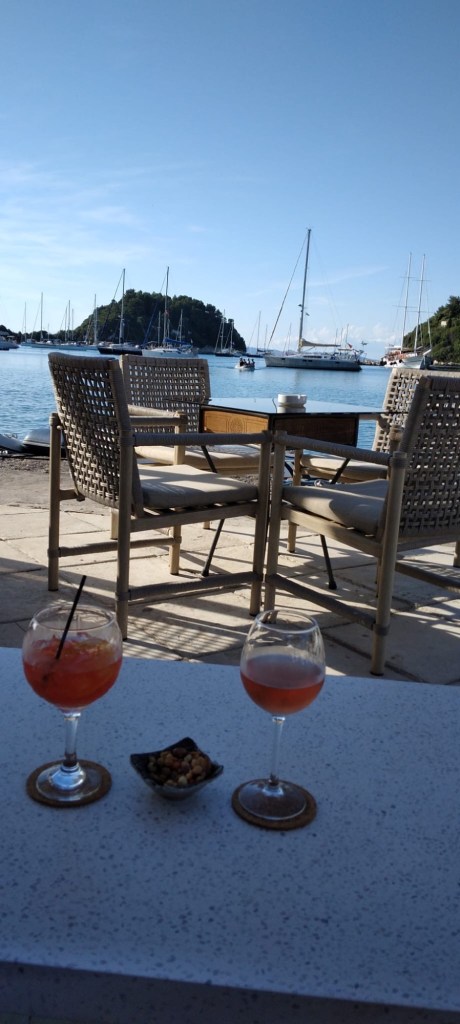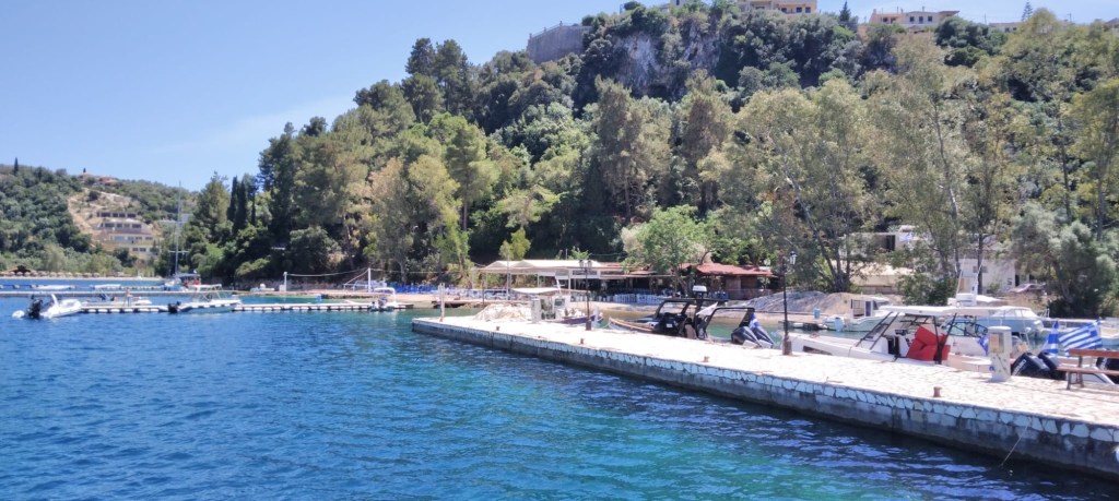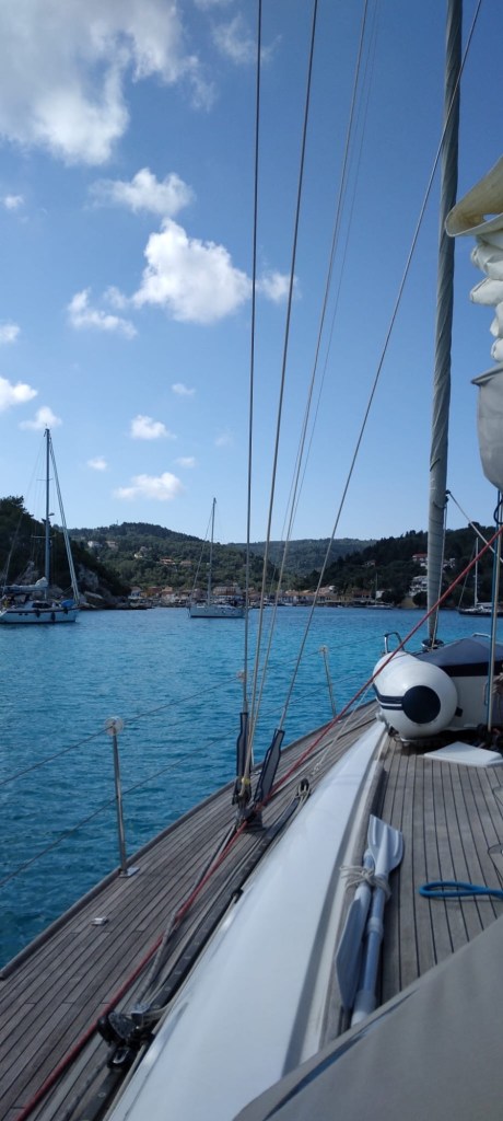 Op 30 mei motorzeilen we naar Lakka op het eiland Paxos. Sinds 2016 is hier niet veel veranderd. We ankeren op 5 meter diepte bijna aan de uitgang van de baai. Het is namelijk goed vol. Er liggen zeker 50 jachten voor anker. We gaan met de dinghy naar de wal, wat Charlie heel leuk vindt. We drinken een goede CS en Griekse rosé met een goed hapje op het terras van de taverna waar we met de dinghy aanleggen. Marleen scoort een nieuwe zomerjurk met 70% korting in de “concept store”!