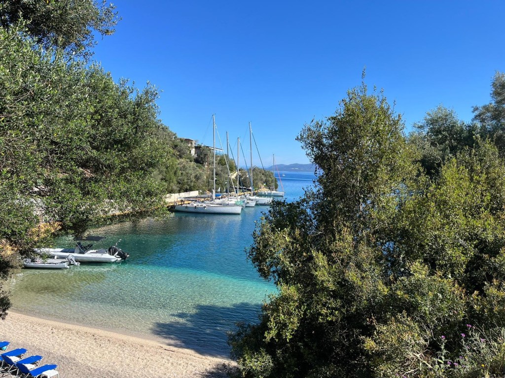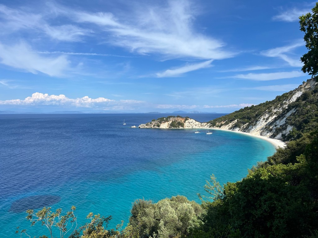 We ankeren in de mooiste baai van Ithaka bij Gidaki beach.