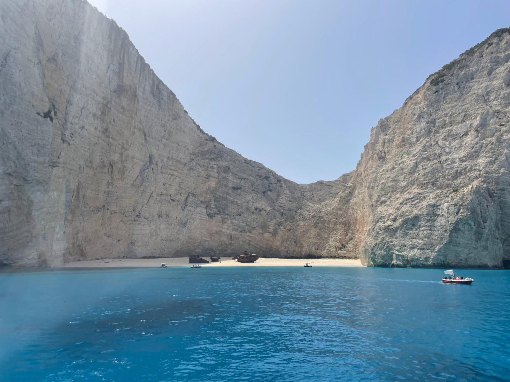 Bij shipwreck bay varen we naar binnen om de indrukwekkende rotsen en natuurlijk het wrak van een smokkelaarsschip goed te bekijken. Erg leuk!