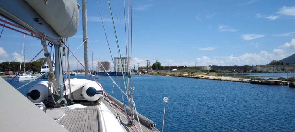 De volgende dag dobberen we heel langzaam naar de pontbrug over het Lefkas kanaal die op het hele uur draait. We zijn er alsnog 10 minuten te vroeg, maar ja. Na de brug koersen we naar Preveza marina waar we eerder waren. Goede plek om de was te doen en een nieuwe rubber veer voor een van de landvasten te kopen.