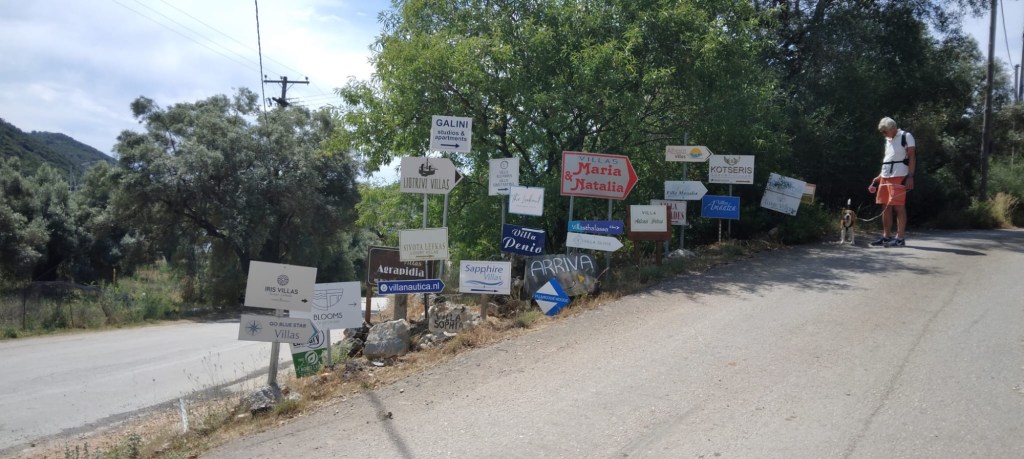 We maken een wandeling naar een baai aan de oostkant van Ithaca. Flink stijgen en dalen!