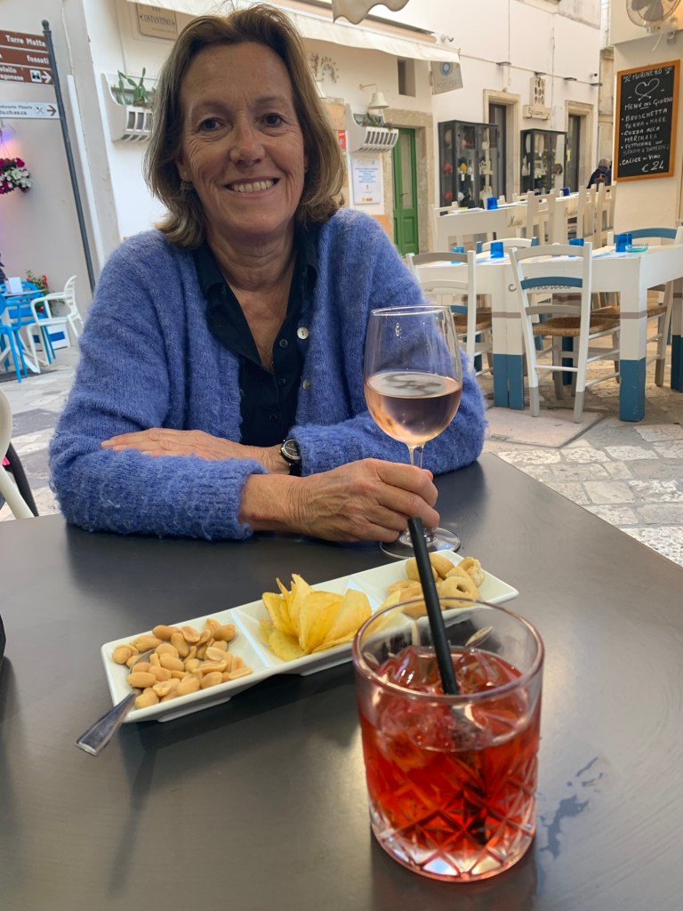 Rond borreltijd lopen we de oude stad in om brood te kopen, rond te kijken en natuurlijk een terrasje te pikken. Een 9 voor de Campari Spritz met, zo bleek bij het betalen, gratis hapjes.