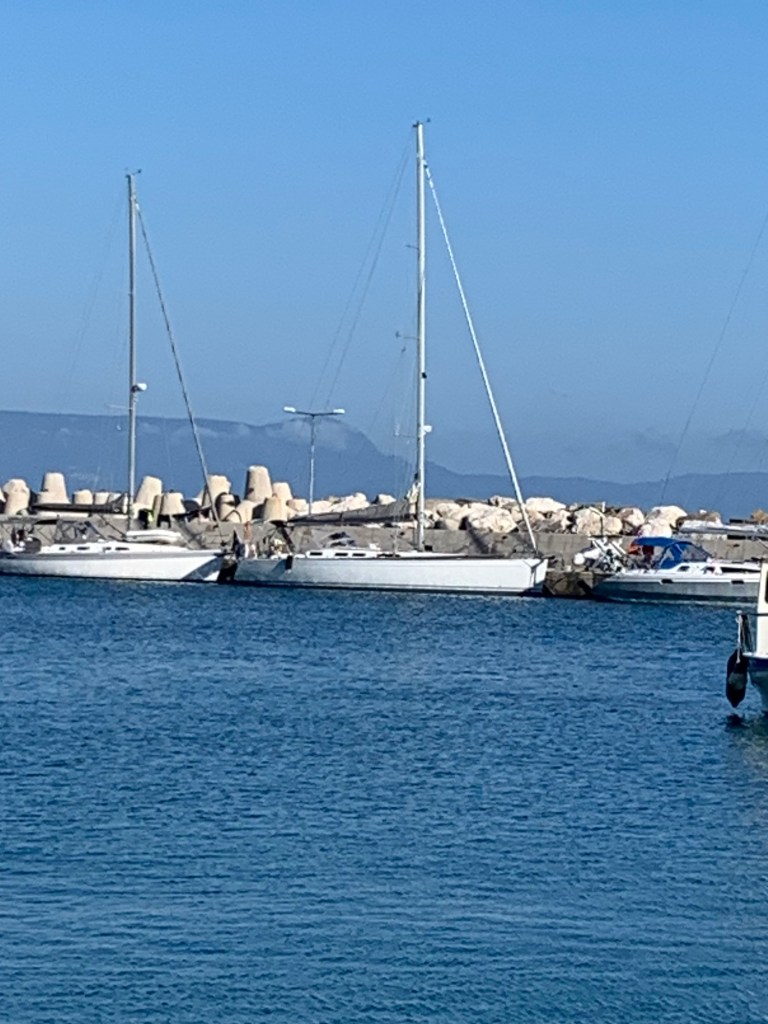 We leggen aan bij Fabrizio, die in de meest beschutte hoek van de haven 6 plekken verhuurt aan passanten. Hij is erg vriendelijk en behulpzaam.