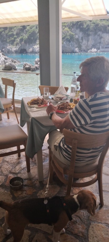 We eten 1 avond in het restaurant van de Corfu Yacht Club (die de haven runt). Ongrieks goed! We komen hier zeker terug, ook al vanwege de professionele en opgewekte havenmeester Andreas.