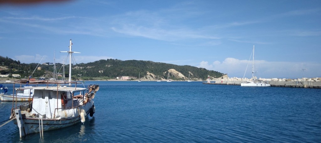 We varen om 07:45 uur weg bij Mandraki om ervoor te zorgen dat we de tegenwind, die in de middag verwacht wordt, zoveel mogelijk vermijden. Dat lukt want om 12:30 uur varen we het haventje van het eiland Ereikousa binnen na 29 mijl, helaas alles wel op de motor.