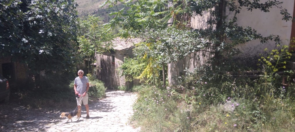 We maken een tour over de noordkant van het eiland. Naast een paar mooie baaien bezoeken we ook een verlaten Venetiaans bergdorp wat nu naast ruïnes vooral uit tavernas blijkt te bestaan. Wel mooi toch.