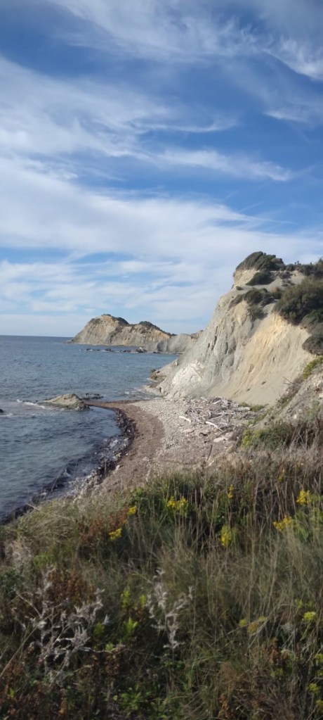 9 en 10 oktober waait het weliswaar uit de goede hoek maar we vinden 20-25 knopen toch wat veel voor de oversteek naar Italië (55-60 mijl) dus we blijven liggen en maken 2 leuke wandelingen over het vrijwel verlaten eiland.