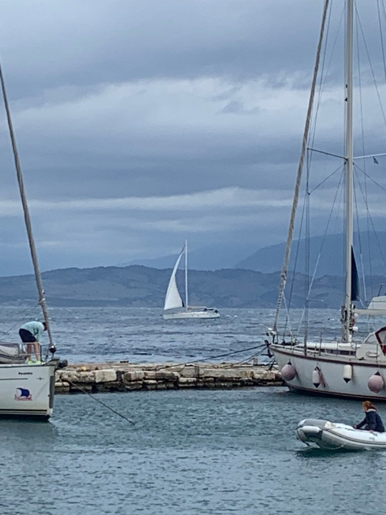 Na 3 dagen Erikoussa met te harde wind en veel regen kwam er ook onweer aan. Terug naar de bewoonde wereld van Corfu dus. Het gaat ook nog eens flink uit het noordwesten waaien de komende dagen en dan is het op Erikoussa niet beschut liggen. En oversteken naar Italië is dan stik in de wind.