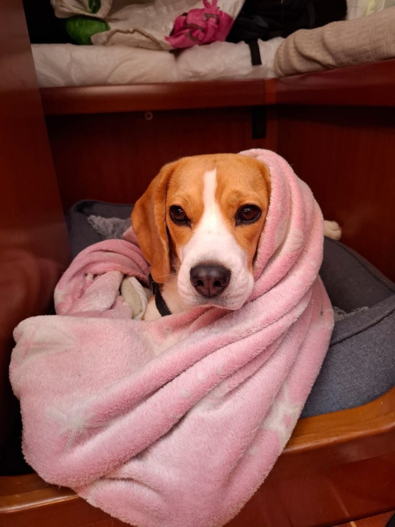 Na 2 weken klussen en wachten tot de zuidoostenwind stopt, varen we op dinsdag dan eindelijk weg.