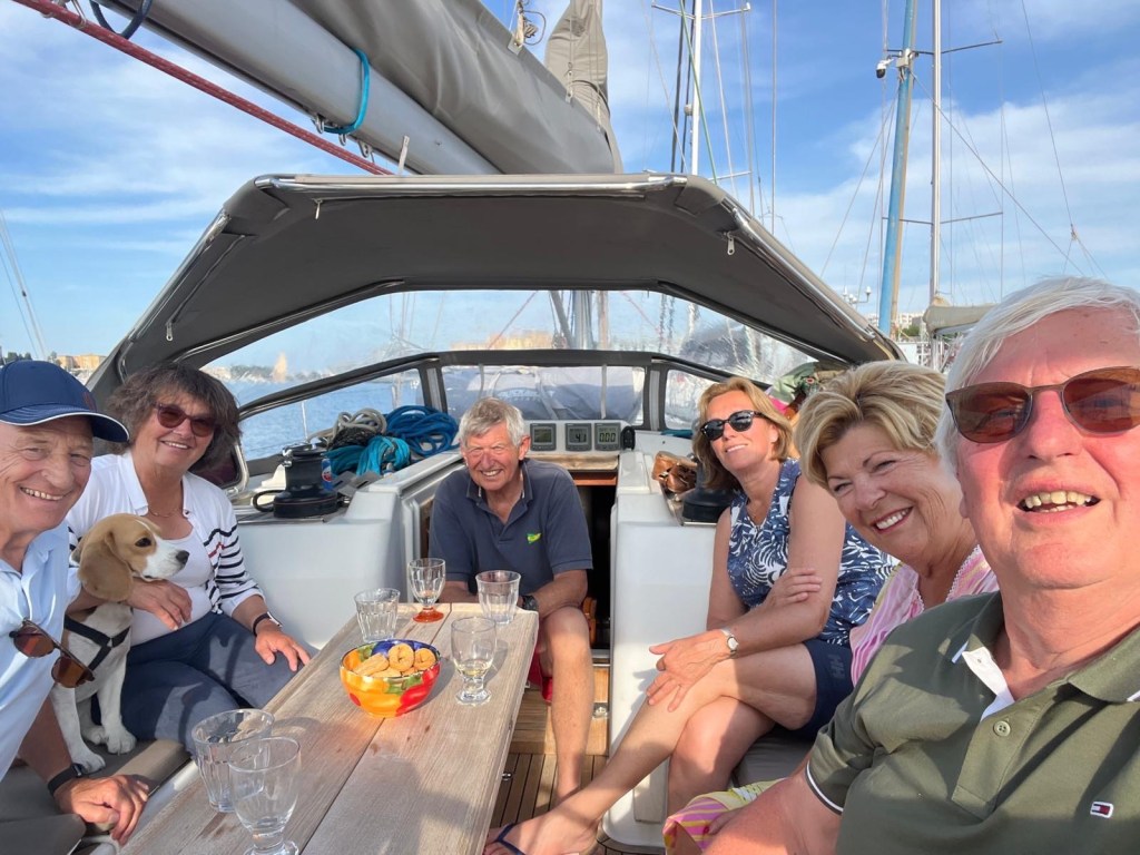 We rijden weer in 4 dagen naar Brindisi met een auto vol spullen voor de boot, naast Charlie en onze bagage. Als we op zondag 11 mei aankomen, ligt de boot in het water zoals beloofd. We worden voor de borrel op de Shipley onthaald door Machiel, die hier aan boord is terwijl het teakdek wordt gerenoveerd. Een langdurige klus maar het wordt erg mooi. We halen samen pizza en het wordt een gezellige avond.