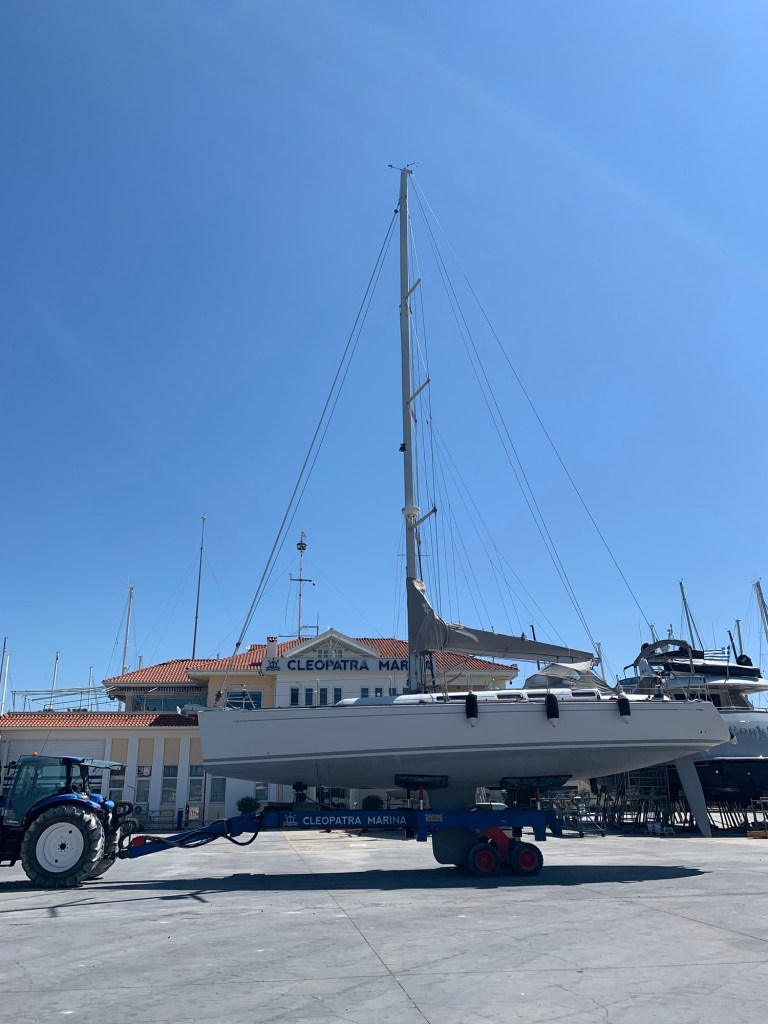 Op 9 september zijn we weer bij de boot in Preveza. Cleopatra Marina is wel een stoffige boel in de droge zomermaanden dus we zijn blij dat we de HD spuit van Herman kunnen lenen om het stof eraf te spuiten. In de middag gaan we weer te water