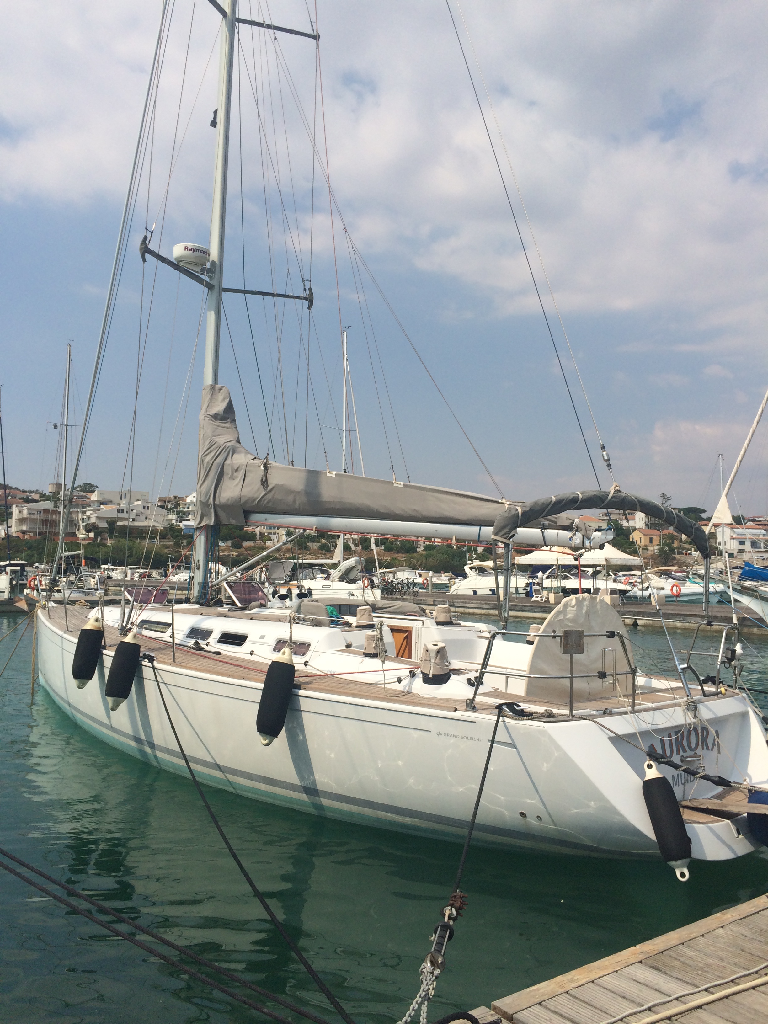 Op 17 juni laat in de middag kwamen we aan na een autorit van 3 dagen via Piacenza, Bocca di Magra, Livorno, de veerboot naar Palermo en de pasweg dwars over Sicilië. De boot lag er goed bij. De volgende dag direct flink aam het poetsen, klussen en de lierdrum naar de lasser gebracht die Silvio voor ons vond. Ook het stuurwiel kwam terug van de zeilmaker met een prachtige nieuwe bekleding van grijs suède, zoals het was!
