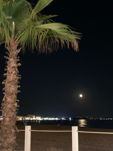 We halen canolli, lekkere involtini en genieten aan boord. We genieten van de volle maan.